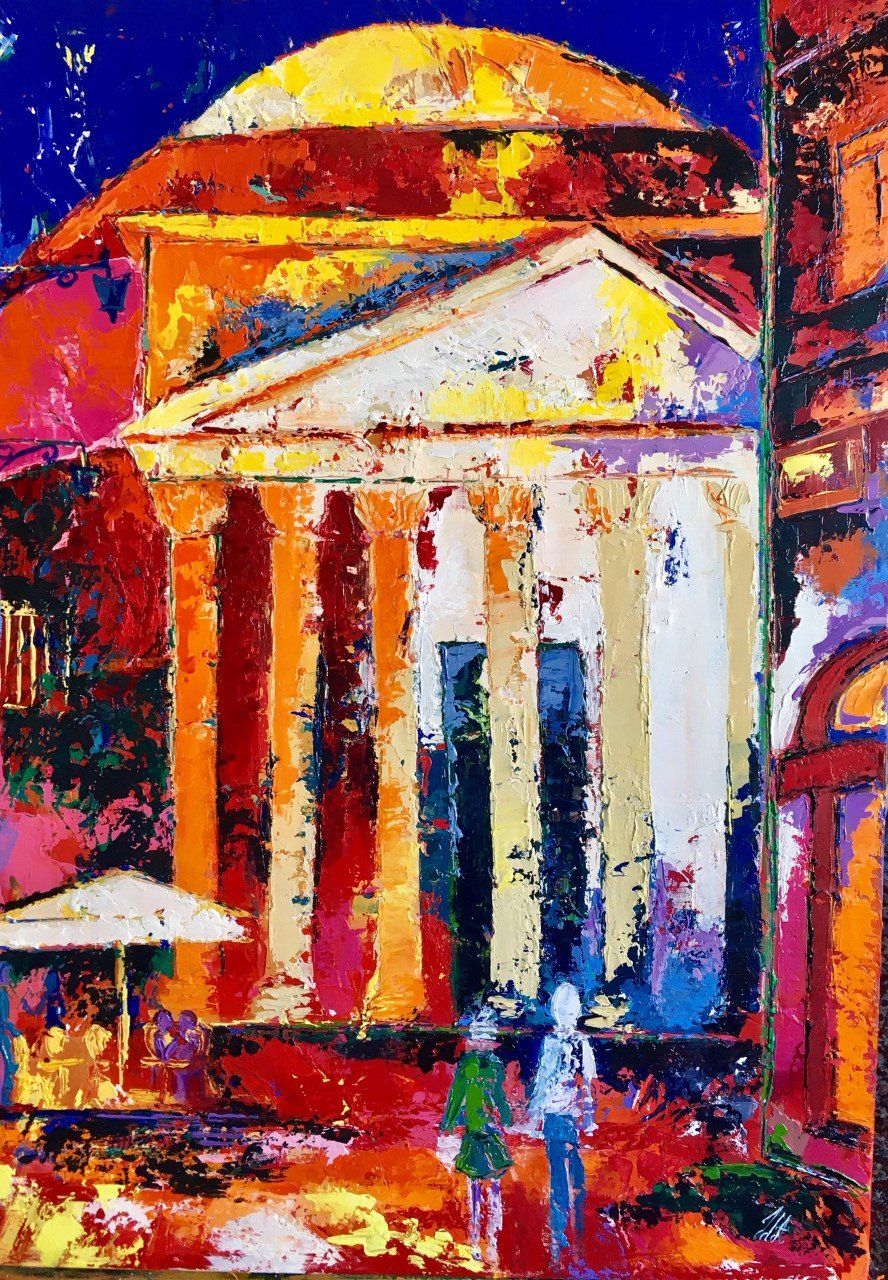 Tuve la oportunidad de pasar 3 meses en Roma para pintar allí. Mis pinturas me han enseñado que no solo hay una Roma, hay una Roma eterna, la de los libros de cuentos que nos atrapa cuando caminamos por Via Appia nos damos cuenta de que usamos los mismos adoquines los romanos hace 2000 años, él tiene Roma romántica, Dolce Vita, esta necesidad de complacer y flotar, para "complacer" y está la Roma espiritual, La Roma de San Pedro, que es Pedro y en la cual Él construyó su iglesia.